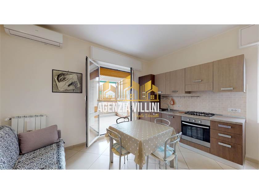 Appartamento ubicato al settimo ultimo piano di un palazzo in Corso Europa centro Loano; si presenta ristrutturato ed arredato recentemente, composto da ingresso, soggiorno con angolo cottura comprensivo di lavastoviglie, una camera da letto matrimoniale, una cameretta con letto singolo ed uno estraibile, divano a letto matrimoniale nella zona giorno , un bagno con doccia grande ed un ampio terrazzo soleggiato, in parte verandato ben attrezzato per mangiare all'aperto. Proposto in affitto stagionale; non sono ammessi animali. Riscaldamento autonomo e climatizzato. Possibilità box Codice CITRA 009034-LT- 0751. CODICE CIN: IT009034C2L8FHIT8T