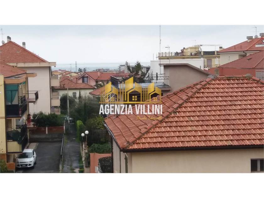 A 700 m. dal mare appartamento ristrutturato su due livelli, sotto ampio zona giorno con angolo cucina, due balconi, camera da letto , bagno, sopra due camere e secondo servizio, vista mare. inoltre è compreso un comodo box al piano terreno dello stabile ed una cantina, e posti auto condominiali nel cortile accessibile da cancello automatizzato.